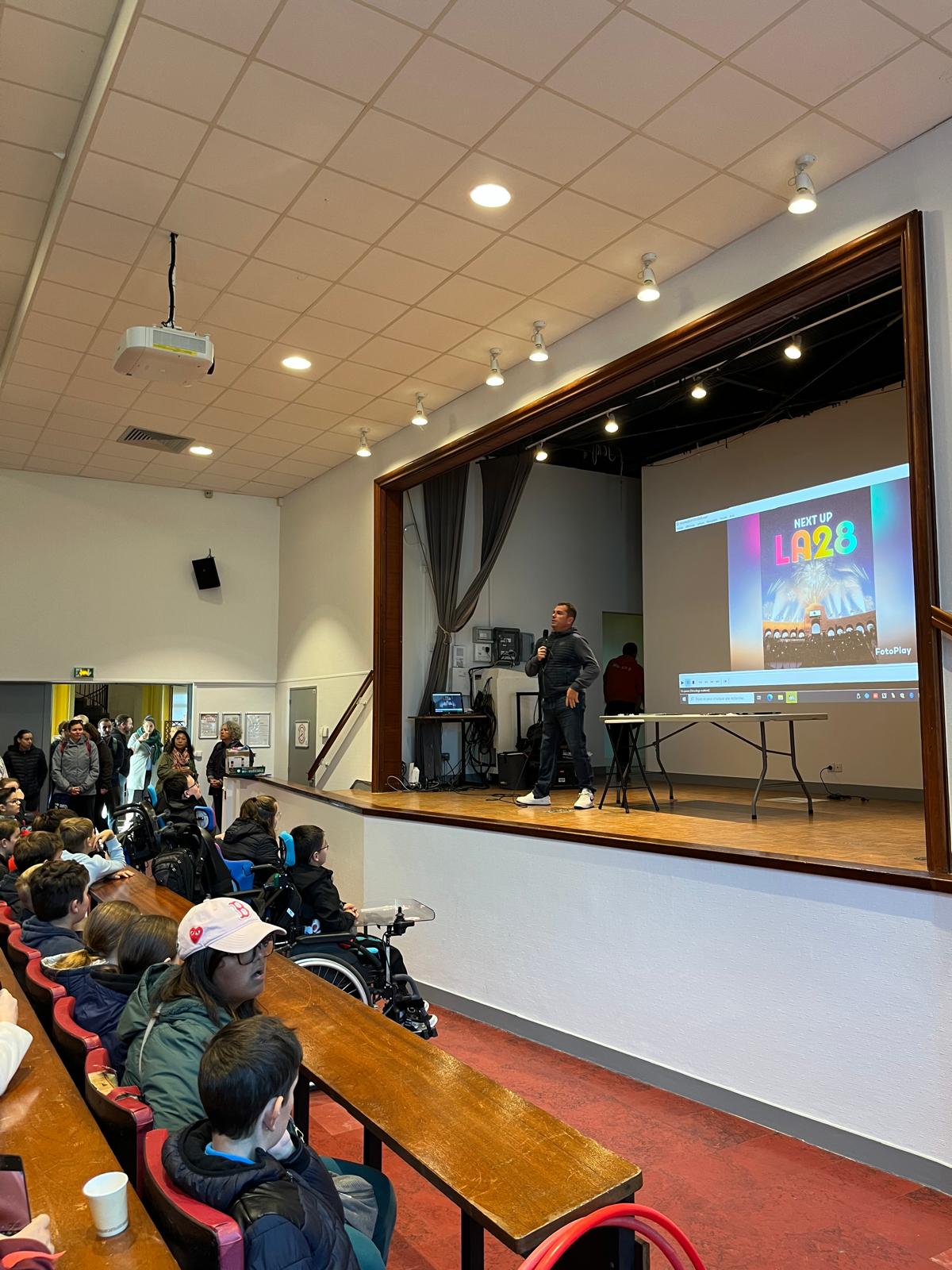 Les jeunes ont également eu la chance de rencontrer Vladimir Vinchon, para-athlète et plusieurs fois participant aux Jeux paralympiques. Il a partagé son expérience et répondu aux questions des élèves avec bienveillance et passion, inspirant tous les participants à dépasser leurs limites et à croire en leurs capacités.