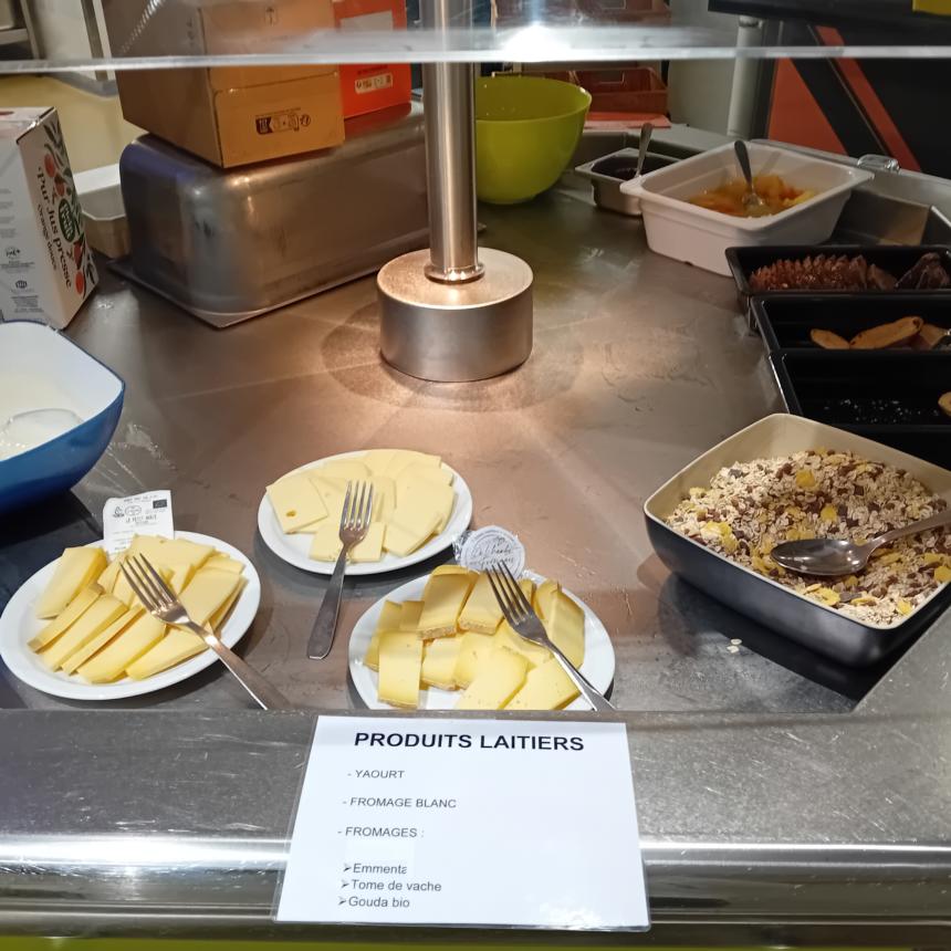 Pour cette action, l’équipe de restauration a proposé une offre diversifiée afin d’encourager la découverte de nouveaux produits. Sur la chaîne du self, des affiches colorées mettaient en avant les différents groupes d’aliments proposés :