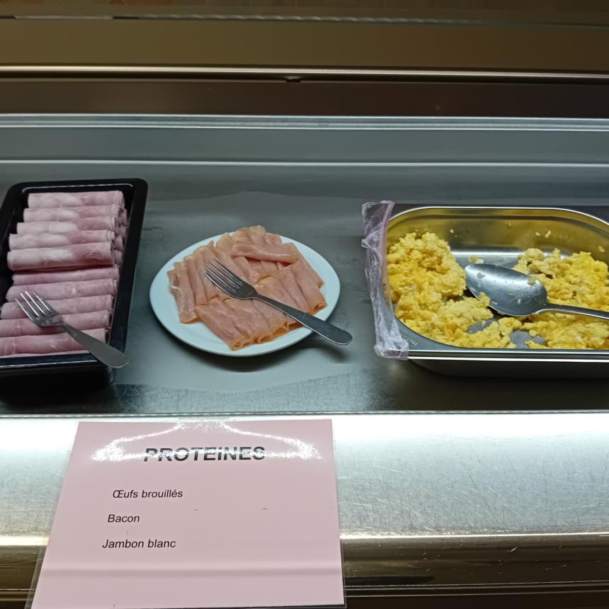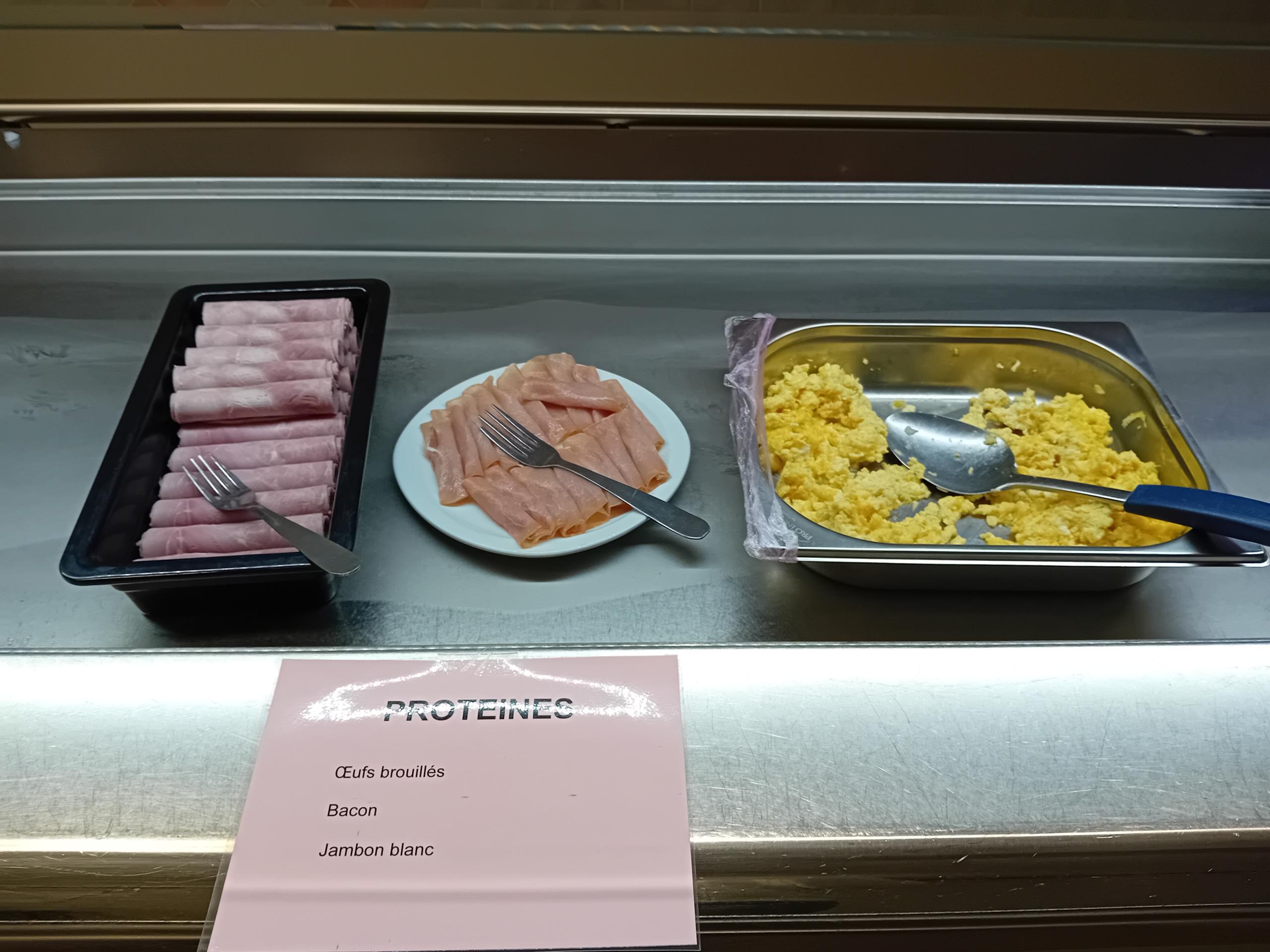 Œufs brouillés, bacon, jambon blanc